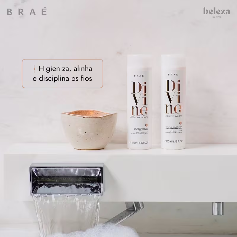 BRAÉ Divine - Condicionador 250ml: hidrata, facilita o desembaraçar e traz disciplina aos fios. Sua fórmula contém ativos com tecnologias que ajudam a eliminar o volume e proporcionar um cabelo mais controlado. Recomendado para quem já tem química nos fios e deseja manter o efeito liso duradouro.
