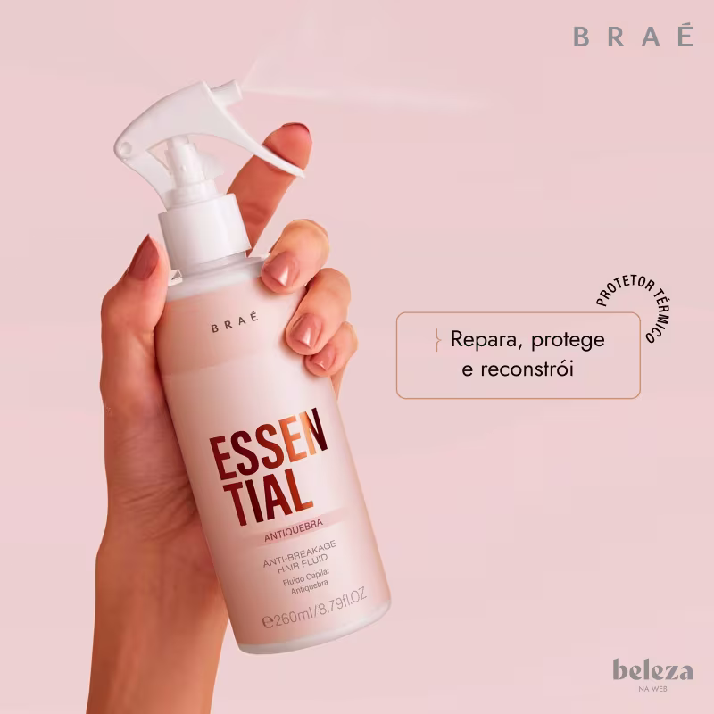 BRAÉ Essential - Hair Repair Spray 260ml: fluido finalizador reparador com proteção térmica, para todos os tipos de cabelos. Ele facilita a rotina de cuidados com os fios, reparando, hidratando, protegendo, reconstruindo e proporcionando brilho intenso aos cabelos. Pode ser utilizado como finalizador ou tratamento reparador.