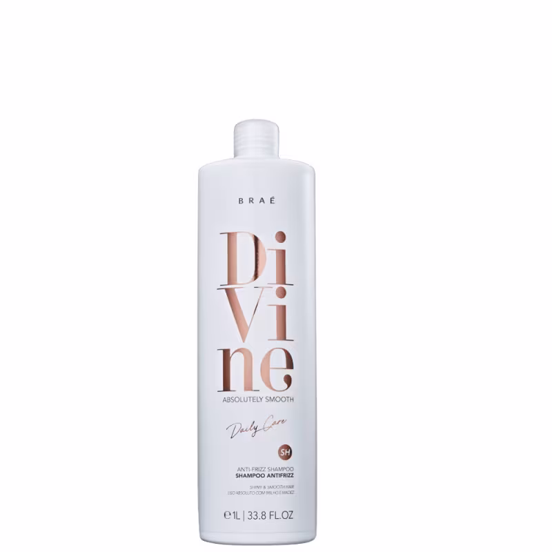 Braé Divine - Shampoo 1L: limpa e deixa os fios mais alinhados e disciplinados. Possui em sua fórmula ativos com tecnologias que eliminam o volume e proporcionam um cabelo mais controlado. É ideal para quem já tem química e deseja manter o efeito liso duradouro.