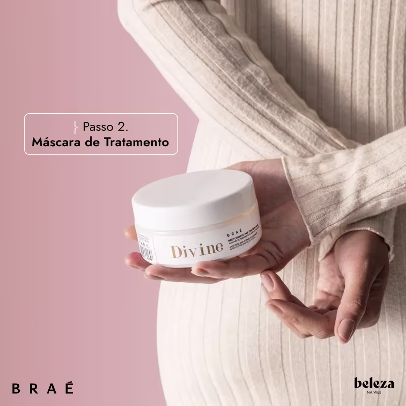 Braé Divine - Máscara Capilar 200g: para cabelos lisos ou quimicamente tratados, nutre intensamente, restaura e alinha. Fortalece, proporcionando maciez e um tratamento profundo enquanto recupera o brilho e a maleabilidade. Ideal para prolongar o efeito liso, tratar as camadas mais externas do fio e hidratar completamente.