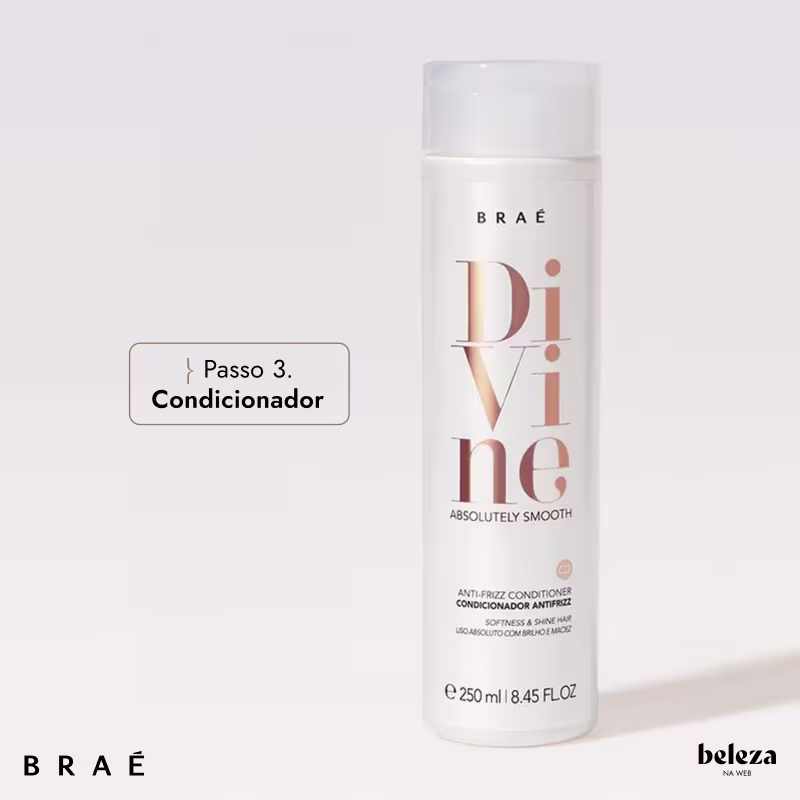 Braé Divine - Condicionador 250ml: para cabelos com frizz, condiciona trazendo um cuidado hidratante que desembaraça e disciplina os fios rebeldes.