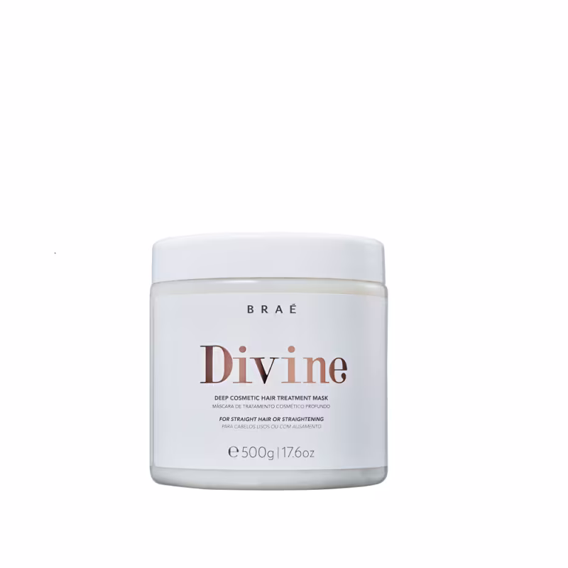 Braé Divine - Máscara Capilar 500g: nutre intensamente os fios, restaura e alinha. Também fortalece, proporciona maciez e um tratamento profundo enquanto recupera o brilho e a maleabilidade. Ideal para prolongar o efeito liso, tratar as camadas mais externas do fio e hidratar completamente.