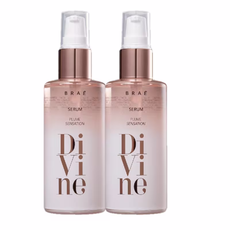 Kit com sérum reparador para cabelos equilibrados. Braé Divine Plume Sensation Duo nutre e combate danos como o frizz e as pontas duplas.