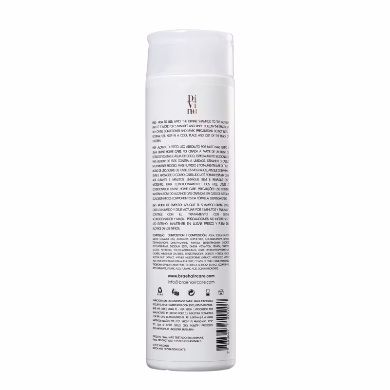 Braé Divine - Shampoo 250ml: deixa os fios mais alinhados e disciplinados durante a limpeza.