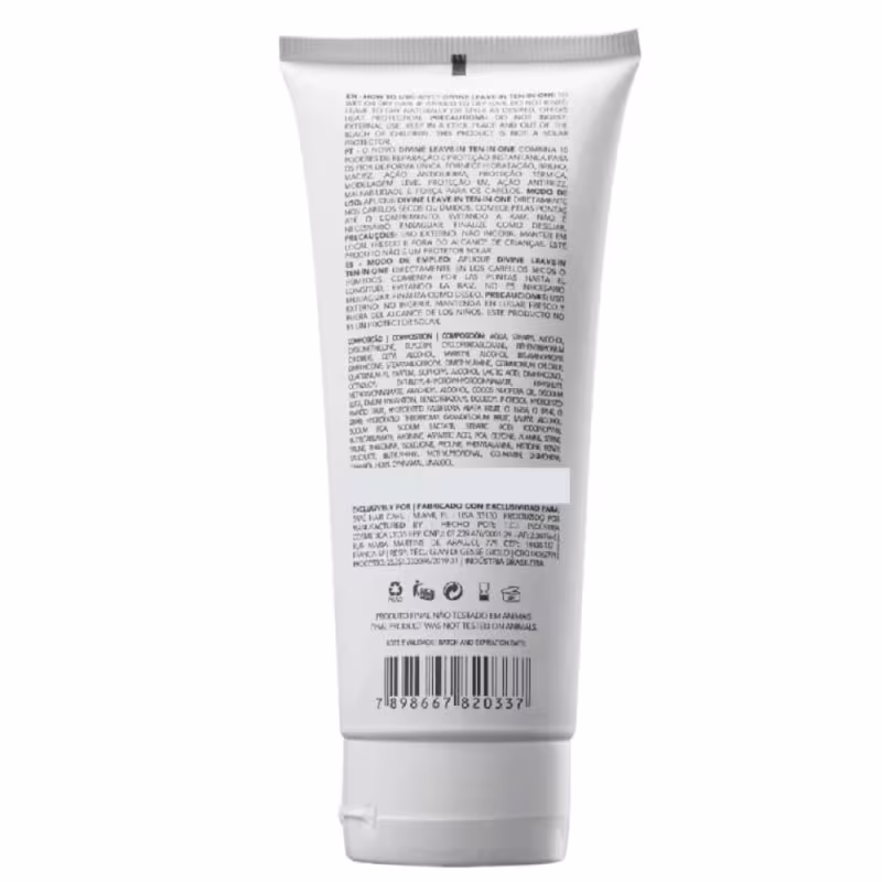 Braé Divine Ten in One - Leave-in 200g: oferece múltiplas ações em um único produto, proporcionando hidratação intensa, proteção térmica, redução de volume, proteção UV e aumento de brilho para todos os tipos de cabelo. Seus componentes principais trabalham na restauração capilar, fortalecendo os fios e melhorando sua aparência geral