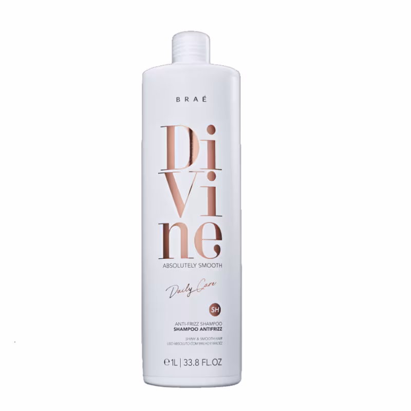 Braé Divine - Shampoo 1L: shampoo para cabelos com frizz. Deixa os fios mais alinhados e disciplinados durante a limpeza.
