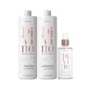 Kit de tratamento para cabelos danificados e com frizz. Braé Divine Salon Triple deixa os fios disciplinados, desembaraçados e hidratados na rotina diária.
