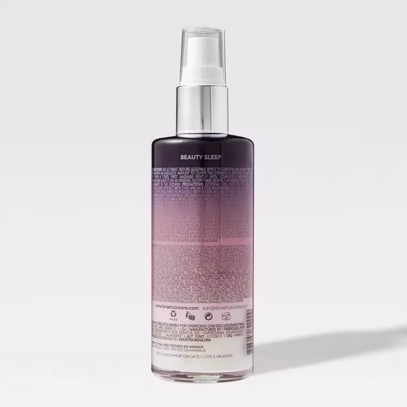 Braé Beauty Sleep Night - Sérum Capilar Noturno 100ml: possui uma formulação rica em quatro ativos que previnem a perda da cor dos cabelos coloridos, potencializando a nutrição dos fios e promovendo um maior equilíbrio da oleosidade do couro cabeludo. Ao acordar seus fios estarão mais macios, protegidos, hidratados, nutridos, fáceis de pentear.