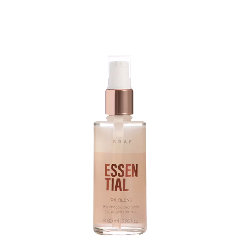Braé Essential Oil Blend - Óleo Capilar 60ml: sua fórmula exclusiva combina ácido hialurônico com um poderoso blend de óleos vegetais, proporcionando uma reparação profunda dos fios danificados, hidratação prolongada e proteção contra as agressões térmicas e diárias. Com o Essential Oil Blend, seus cabelos terão uma aparência saudável, brilhante e cheia de vida.