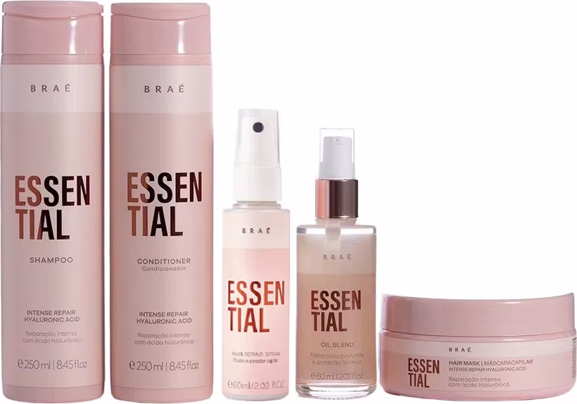 O Kit Braé Essential Home Care Completo é um tratamento nutritivo que limpa, repara os fios fragilizados, promove hidratação progressiva e protege o cabelo contra agressões diárias e térmicas.