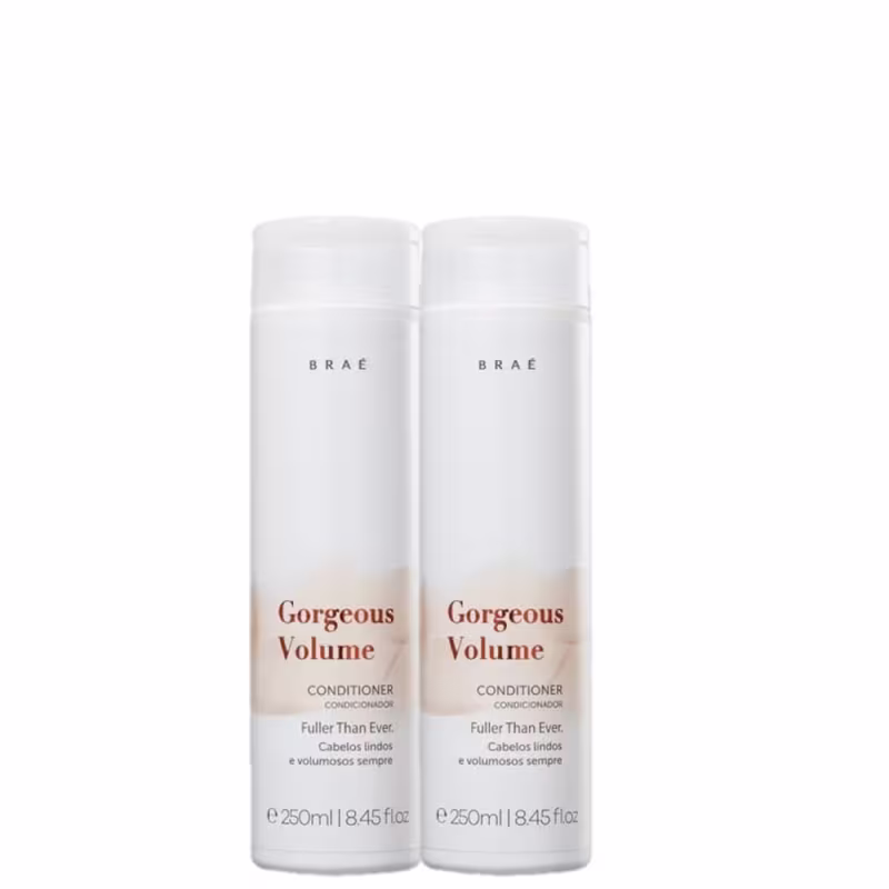 Kit com dois condicionadores para cabelos finos e todos os tipos. BRAÉ Gorgeous Volume condiciona e promove maior volume para os fios.