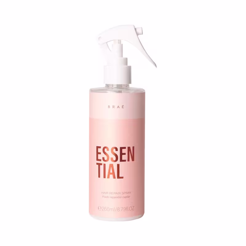Braé Essential Hair Repair Spray Fluido Reparador - Leave-in 260ml: fluido finalizador reparador com proteção térmica, para todos os tipos de cabelos. Ele repara, hidrata, protege, reconstrói e proporciona brilho intenso aos fios. Pode ser utilizado como finalizador ou tratamento reparador.