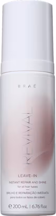 Braé Revival - Leave-in 200ml: finalizador que facilita a escovação, revitaliza e repara, além de dar brilho aos fios. Possui proteção térmica, promove toque sedoso e aparência saudável, sem pesar.