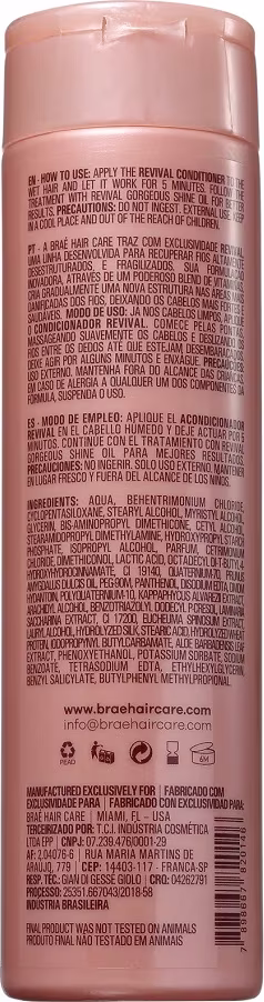 Braé Revival - Condicionador 250ml: atua no interior dos poros do cabelo para dar estrutura às áreas danificadas. Sua fórmula resgata gradativamente as camadas sensibilizadas dos fios, deixando o cabelo com brilho e resistência.