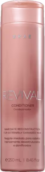 Braé Revival - Condicionador 250ml: age no interior dos poros do cabelo para dar estrutura às áreas mais danificadas. Sua fórmula resgata gradativamente as camadas sensibilizadas dos fios, deixando o cabelo com brilho e resistência.