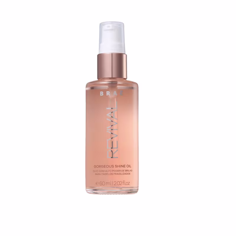Braé Revival Gorgeous Shine - Óleo Capilar 60ml: nutre e fortalece as pontas, além de devolver a vitalidade aos fios. Também repõe os lipídios perdidos e sela os fios para que o cabelo fique com brilho, resistência e disciplina. Se usado com frequência previne a formação de pontas duplas.