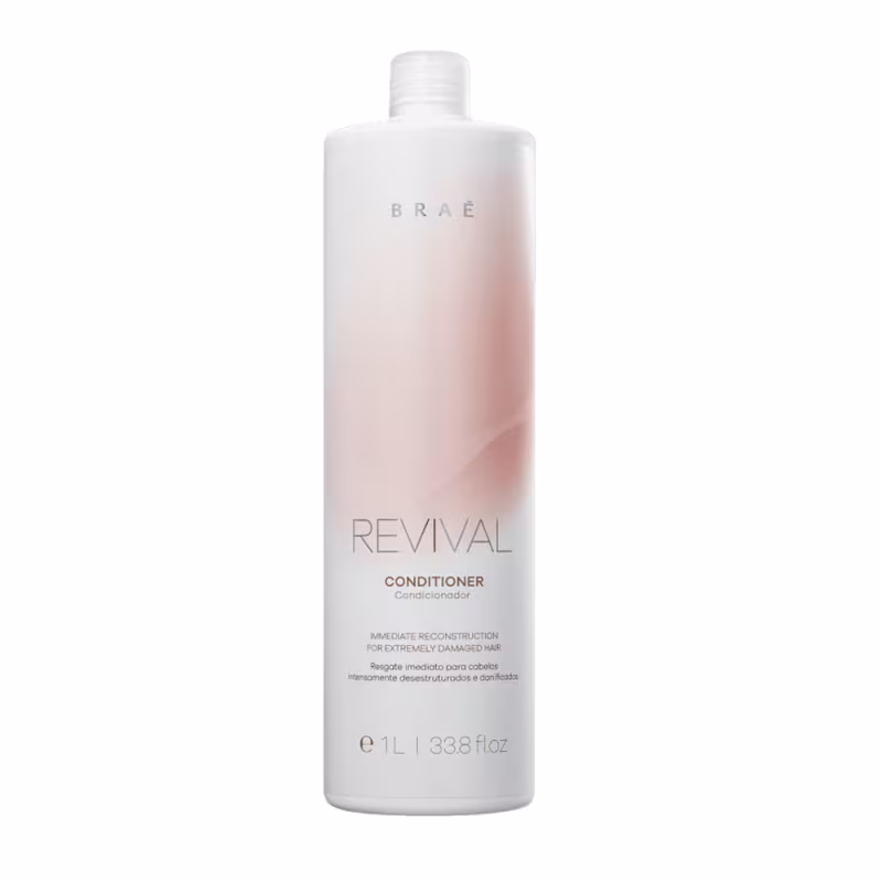 Braé Revival - Condicionador 1L: desembaraça e recupera a fibra capilar para trazer força e beleza aos fios. Atua internamente nos poros do cabelo, estruturando as áreas áreas danificadas. Os ativos presentes em sua fórmula resgatam as camadas sensibilizadas do cabelo, dando força e brilho.