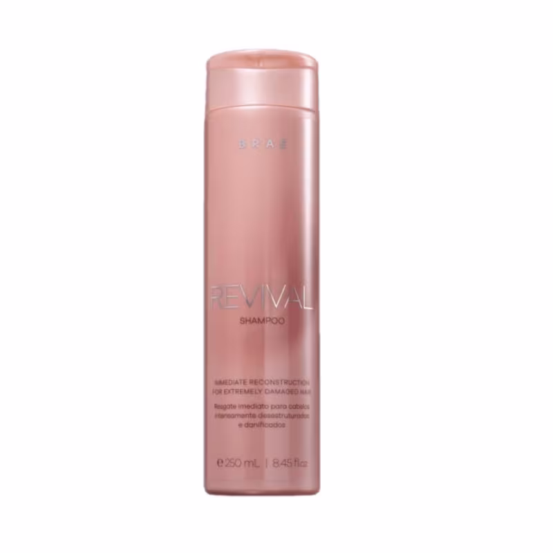 Braé Revival - Shampoo 250ml: para cabelos danificados e fragilizados, age na recuperação da fibra capilar para resgatar a força dos fios.