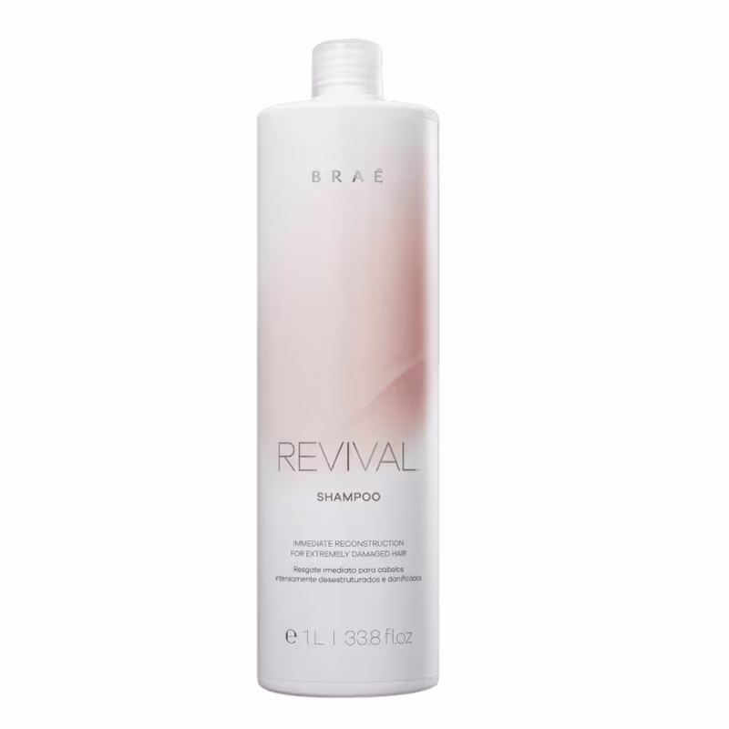 Braé Revival - Shampoo 1L: higieniza e auxilia na recuperação dos fios desestruturados. Sua fórmula conta com um blend de vitaminas que agem na reconstrução da fibra capilar. Deixa o cabelo mais brilhante, resistente e revitalizado.