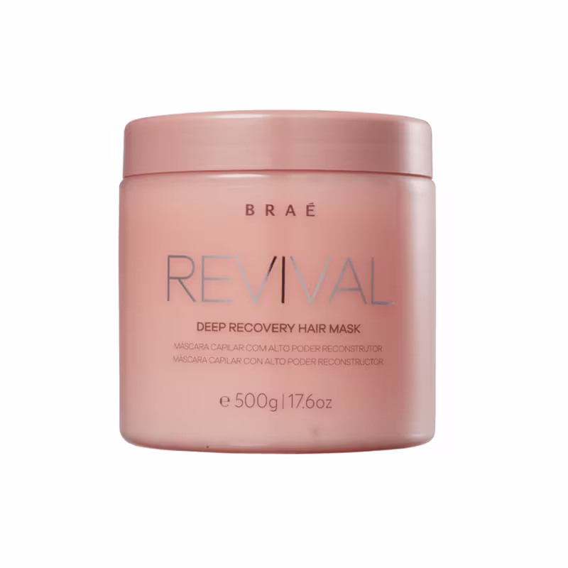 BRAÉ Revival - Máscara de Reconstrução 500g: atua na recuperação e proteção da fibra capilar, deixando ela forte, hidratada e com brilho. Também cria uma camada protetora em torno do fio para que o cabelo fique mais brilhante, resistente e cheio de vida.