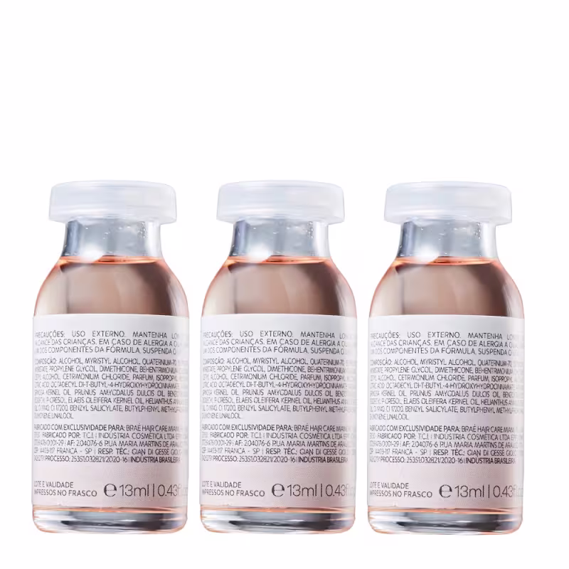 Braé Revival Power Dose - Ampola Capilar 3x13ml: age de maneira imediata fortalecendo os fios e regenerando as camadas da fibra capilar. Sua fórmula conta com Óleos de Amêndoas, Argan e Ojon, que hidratam, nutrem, dão brilho e maciez aos cabelos.