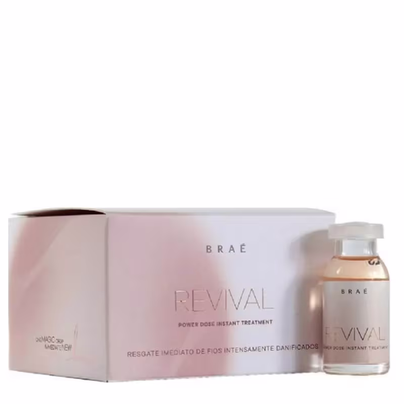 Braé Revival Power Dose - Ampola 13ml: recupera a fibra capilar desestruturada de maneira imediata. Deixa os fios brilhantes, fortes e hidratados em poucos minutos.