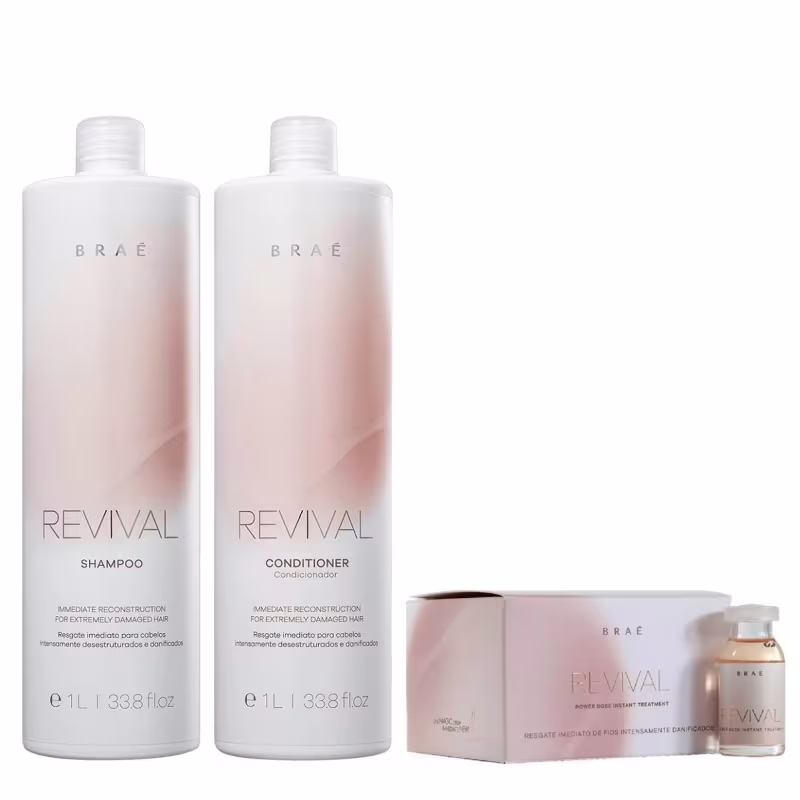 Não sei o CEPKit para cabelos danificados e fragilizados. Kit Braé Revival Treatment Salon fortalece e protege intensamente os fios.