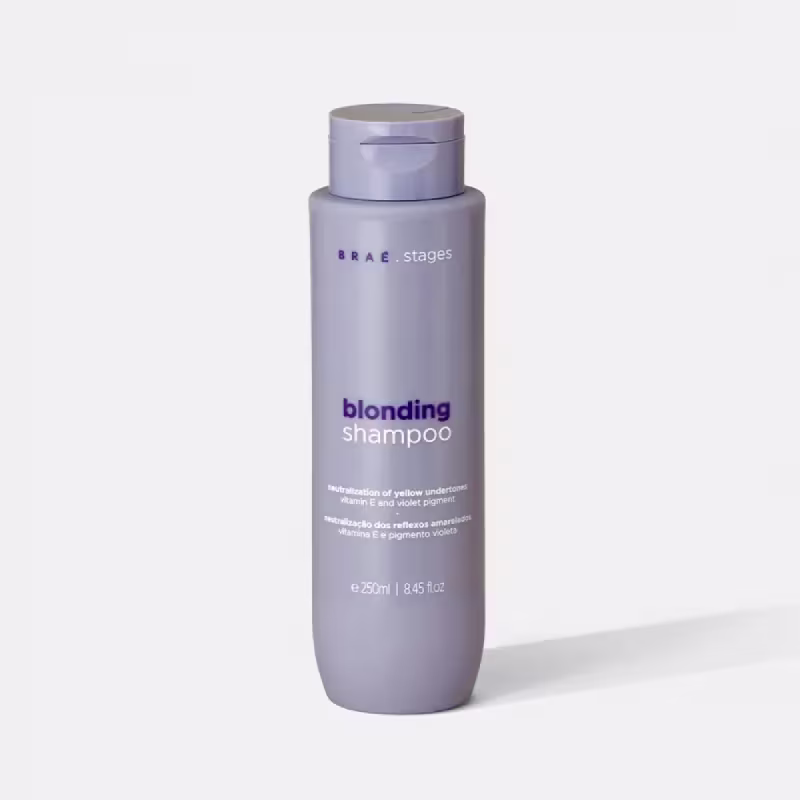 Braé Stages Blonding - Shampoo 250ml: para cabelos loiros ou descoloridos. Limpa e trata os fios de forma eficaz, realçando a cor dos cabelos claros. Seu efeito matizador proporciona loiros mais saudáveis, vibrantes e iluminados por mais tempo.