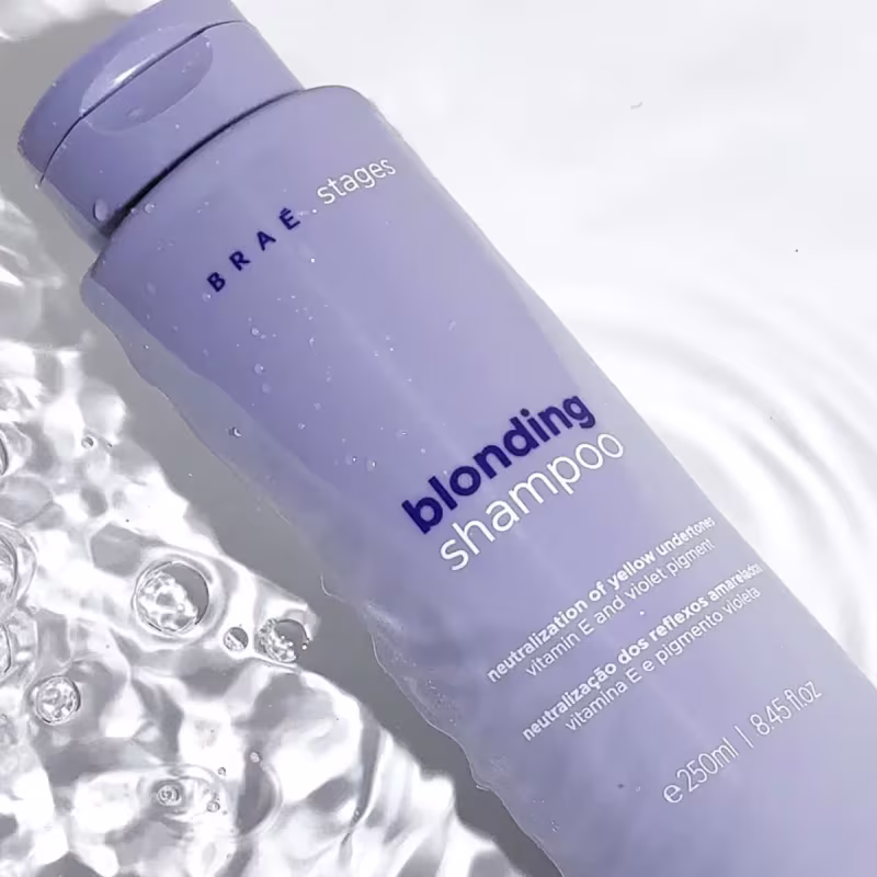 Braé Stages Blonding - Shampoo 250ml: para cabelos loiros ou descoloridos. Limpa e trata os fios de forma eficaz, realçando a cor dos cabelos claros. Seu efeito matizador proporciona loiros mais saudáveis, vibrantes e iluminados por mais tempo.