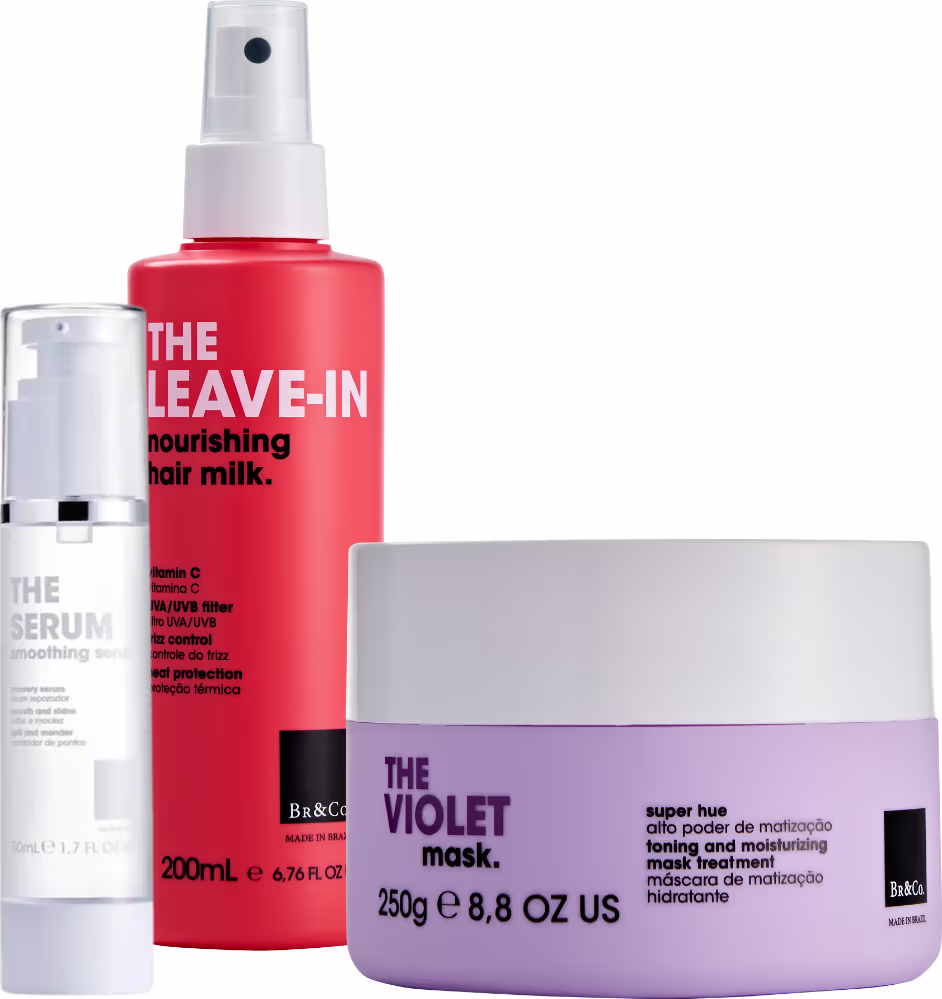 O Kit Br&Co Beauty Care garante hidratação, reparação, menos frizz e um cabelo matizado, com aspecto saudável e brilho intenso.