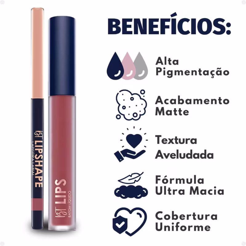 O Kit Bruna Tavares BT Gabriela & Marsala é o combo ideal para lábios impactantes, definidos e de longa duração. A combinação do icônico Batom Líquido Matte BT com a Lapiseira Labial BT Lipshape oferece cor intensa, acabamento profissional e alta performance, garantindo contorno preciso e preenchimento perfeito para um visual marcante e sofisticado.