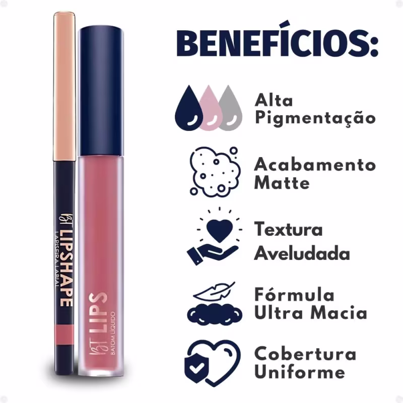 O Kit Bruna Tavares BT Victoria & Rose Brown é o combo ideal para lábios impactantes, definidos e de longa duração. A combinação do icônico Batom Líquido Matte BT com a Lapiseira Labial BT Lipshape oferece cor intensa, acabamento profissional e alta performance, garantindo contorno preciso e preenchimento perfeito para um visual marcante e sofisticado.