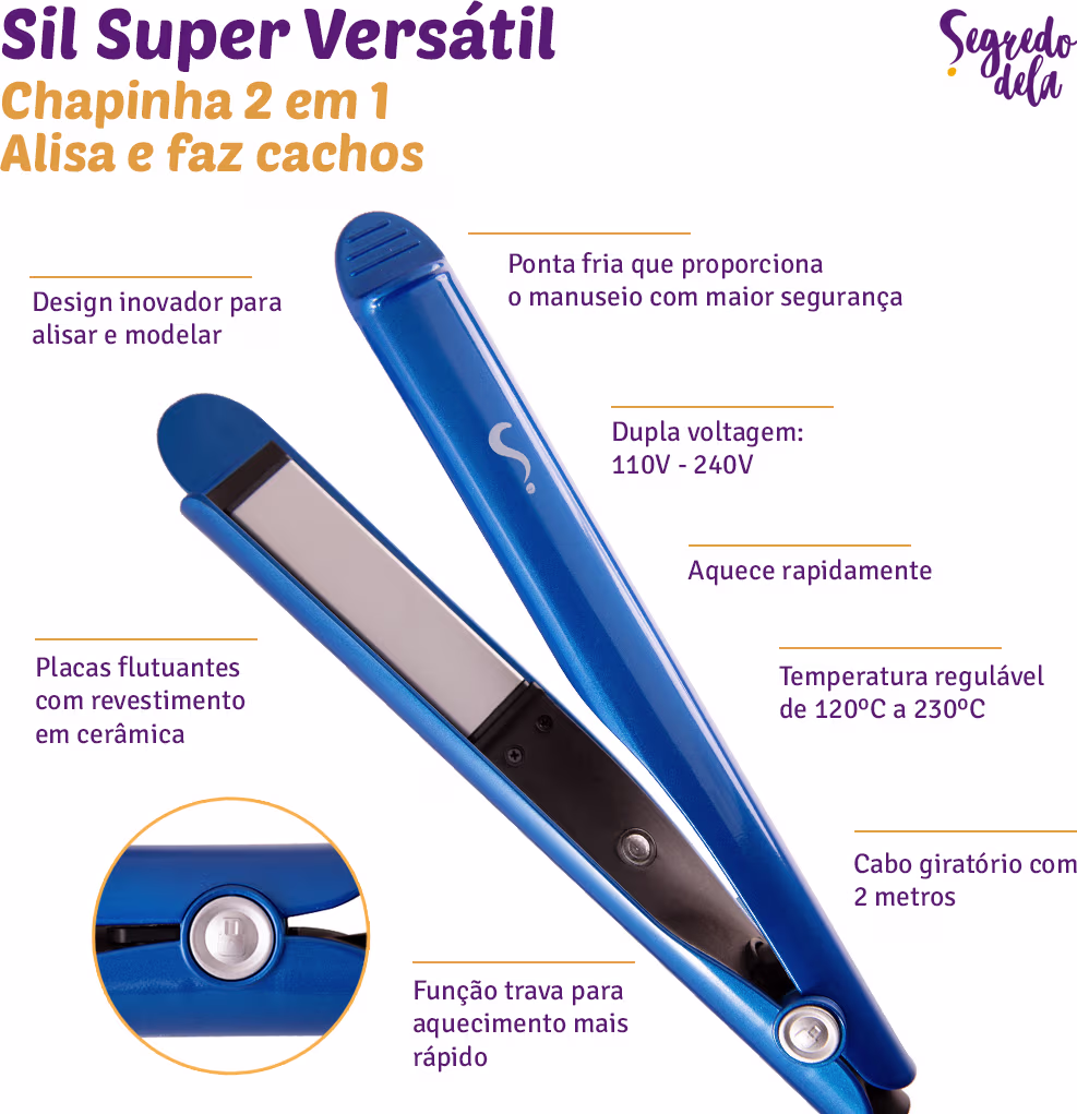 Segredo Dela Sil Super Versátil - Chapinha 2 em 1: com