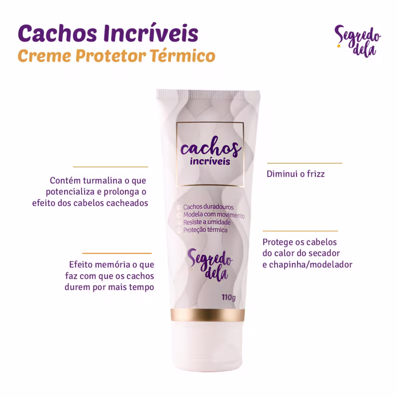 Segredo Dela Cachos Incríveis - Creme Protetor Térmico 110g: possui