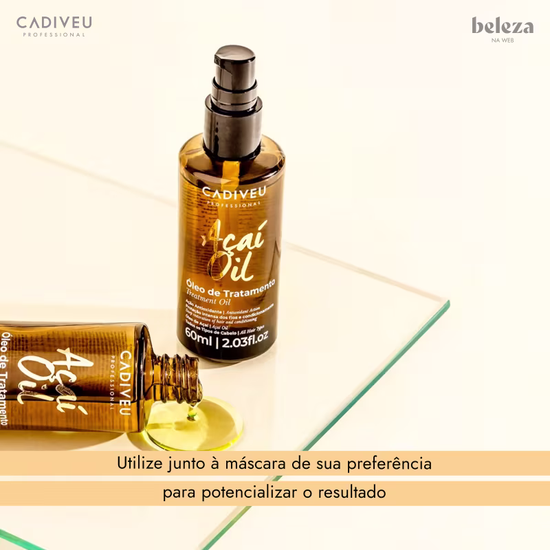 Kit de óleo de tratamento para todos os tipos de cabelo. Cadiveu Professional Açaí Oil tem ação multifuncional que nutre e elimina o frizz.