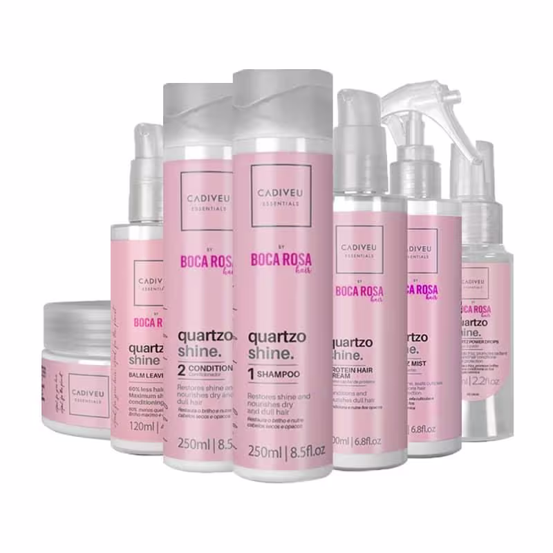 O Kit Cadiveu Professional Quartzo Shine Cuidado Super Completo é um tratamento que começa desde antes da lavagem, preparando o cabelo para receber os benefícios da linha, garante nutrição que não impacta na purificação dos fios, facilita o desembaraço e dá maciez aos fios, com uma finalização perfeita para selar as cutículas e promover proteção prolongada com pontas reparadas.