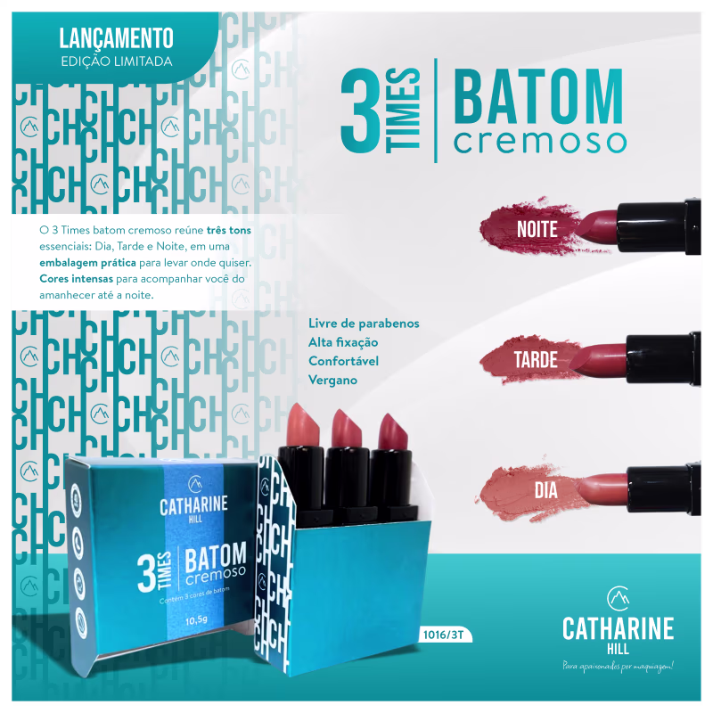 Kit Catharine Hill 3 Times Batom Cremoso: ideal para o dia a dia. Melhores Kits de Catharine Hill na BLZ. Ver mais ❯
