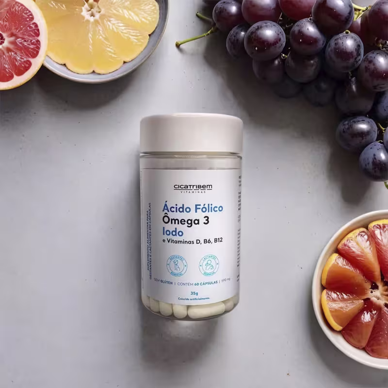 O Kit Cicatribem Ácido Fólico Ômega 3 Iodo possui fórmula que traz benefícios fundamentais para a saúde materna e fetal. Além de promover a saúde durante a gravidez, o Ácido Fólico também beneficia mulheres não grávidas, auxiliando na saúde cardiovascular, na função cognitiva e na manutenção dos níveis de energia. É o suporte necessário para uma jornada saudável da maternidade, enquanto você desfruta dos benefícios adicionais para o bem-estar geral. Tenha uma base sólida para sua saúde e a do seu bebê com um suplemento multivitamínico de qualidade e confiança.