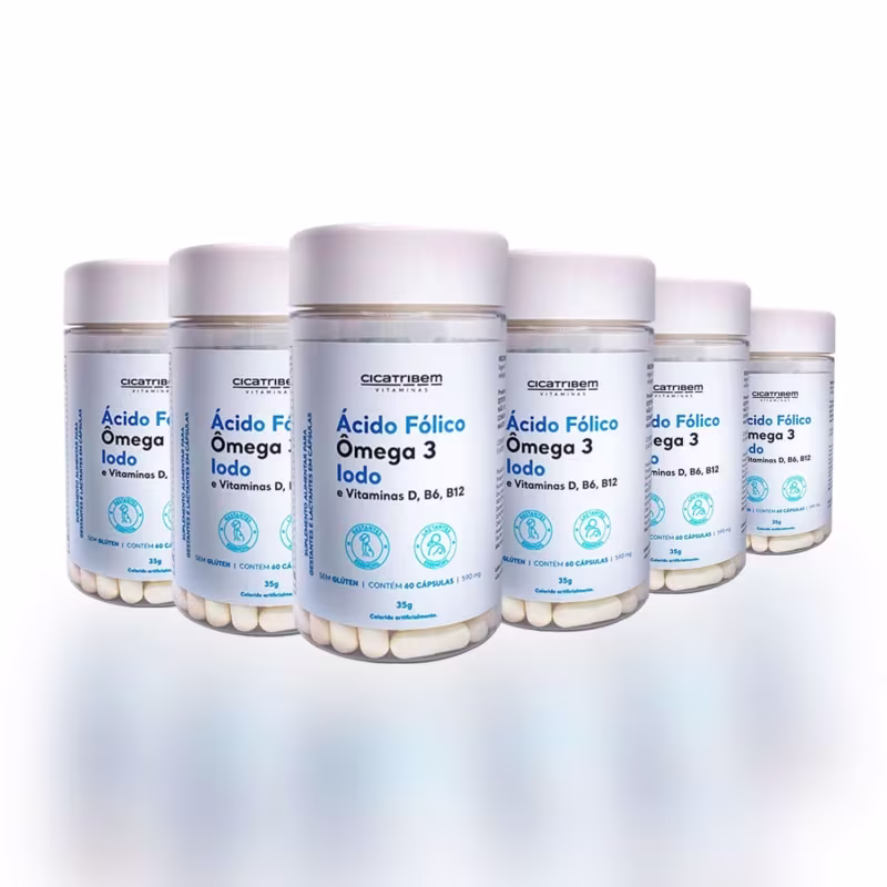 Cicatribem Ácido Fólico Ômega 3 Iodo - Suplemento Multivitamínico 6x(60 Cápsulas)
