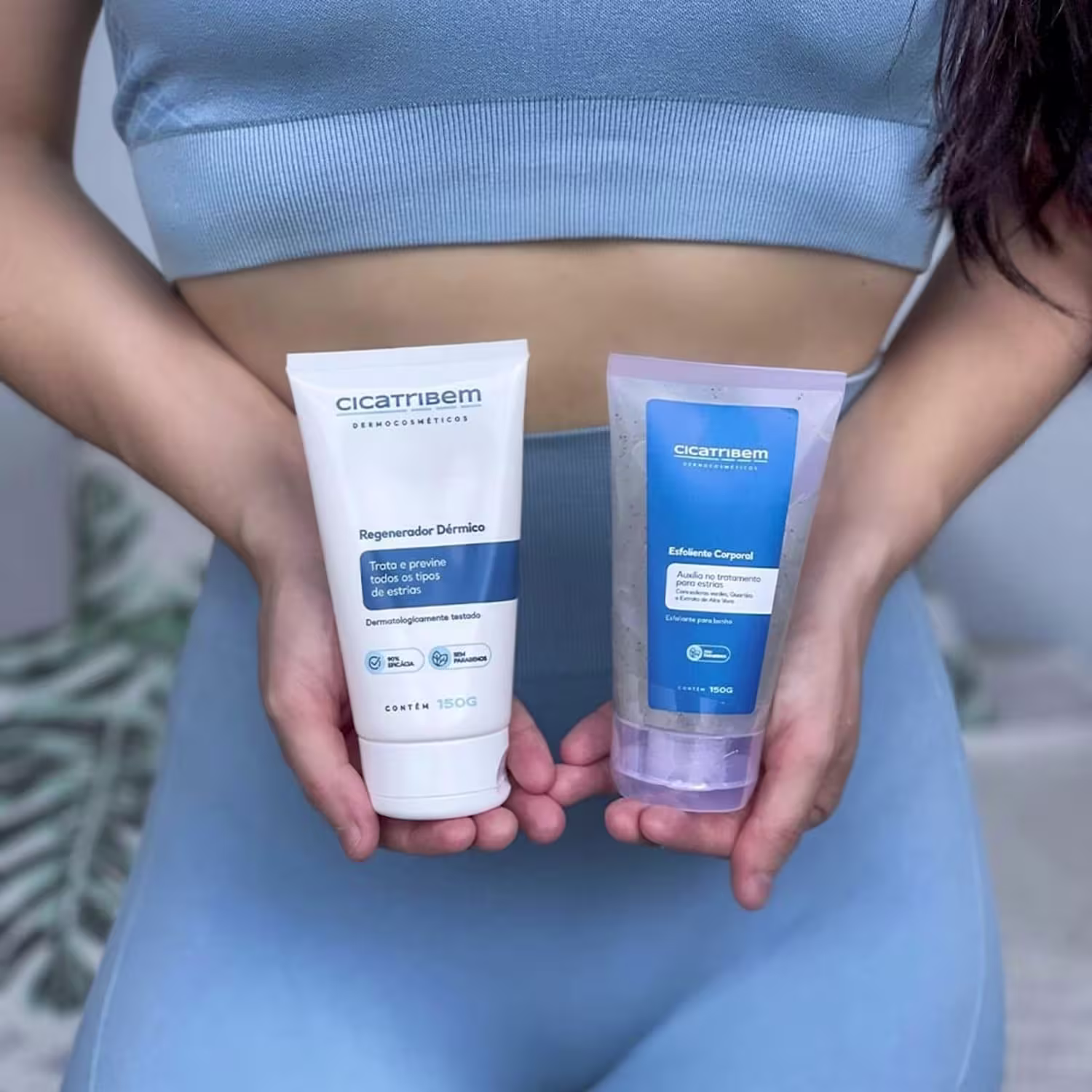 Não sei o CEPKit com quatro hidratantes e quatro esfoliantes antiestrias. Cicatribem Hidratante e Esfoliante Antiestrias limpa, hidrata e previne e suaviza a aparência de estrias.