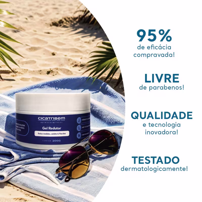 O Kit Cicatribem Redutor de Medidas foi desenvolvido com uma fórmula avançada para oferecer resultados visíveis na redução de medidas indesejadas e no combate a flacidez da pele. Ele combina ingredientes de alta qualidade e tecnologia inovadora que promovem uma experiência de cuidados com o corpo transformadora, proporcionando uma aparência de pele mais firme, suave e definida. É indicado para todos os tipos de pele e possui 95% de eficácia comprovada em testes de laboratório, na redução e tratamento de celulite, flacidez e gordura localizada.