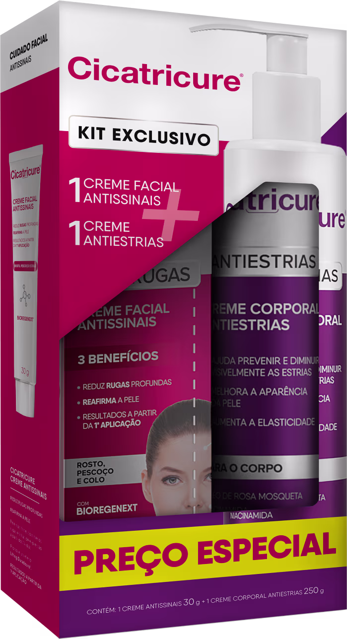 Kit Cicatricure Antiestrias e Antissinais, para pele firme e marcas reduzidas. Melhores Kits de Cuidados para face Cicatricure na BLZ Ver mais ❯
