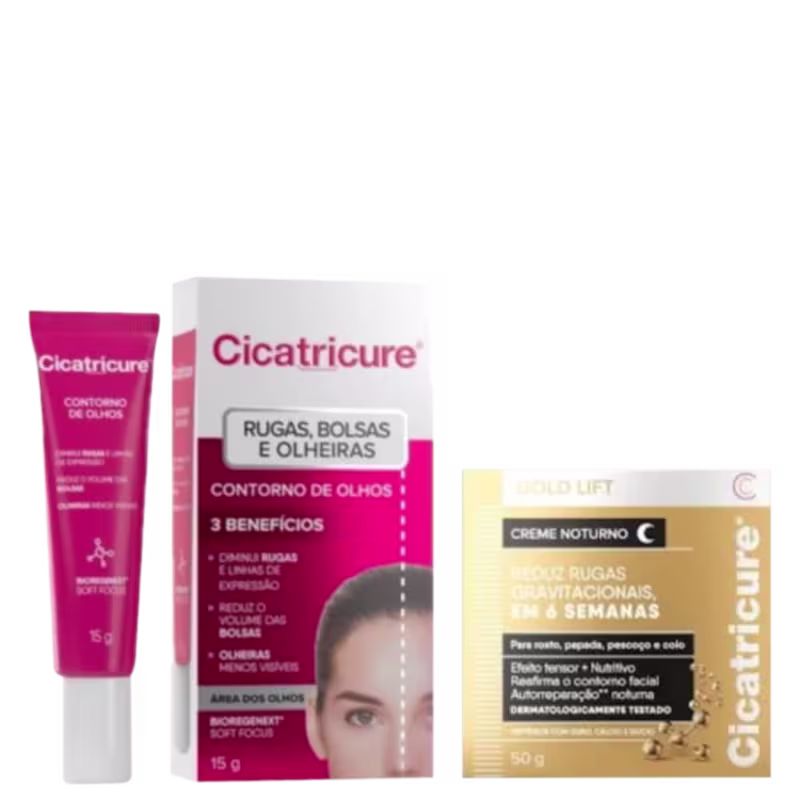 Não sei o CEPKit com gel contorno de olhos e tratamento antissinais. Cicatricure Antissinais Gold Lift Noturno hidrata intensamente a pele, enquanto reduz rugas.