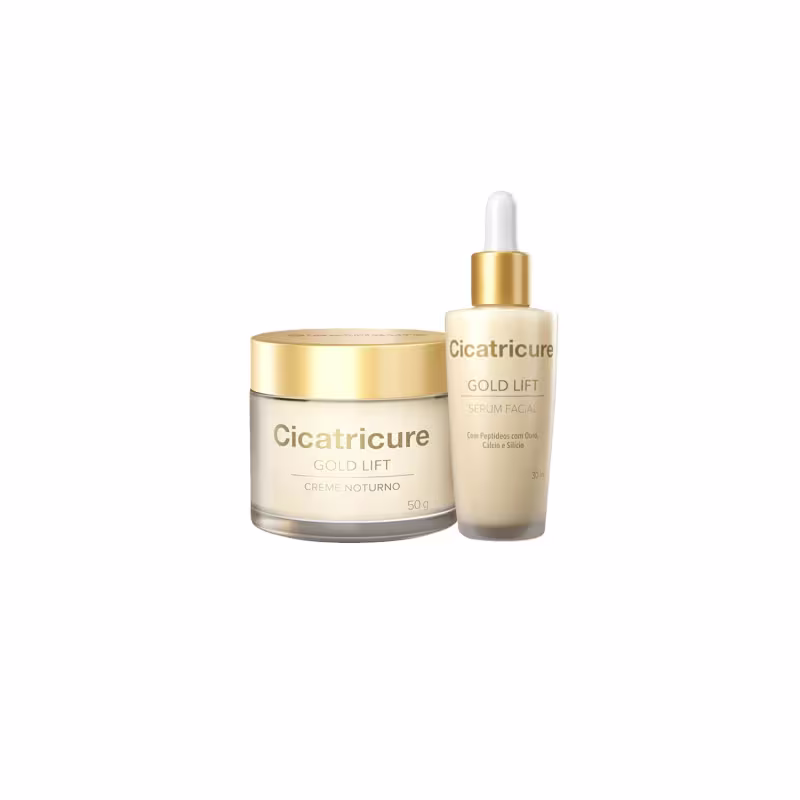 Cicatricure Gold Lift - Sérum Facial 30ml: efeito firmador combina o poder dos Peptídeos com Ouro, do Cálcio e do Silício, aumentando a elasticidade da pele, definindo o contorno facial e firmando a pele do rosto. Em duas semanas, ajuda a reduzir rugas gravitacionais.