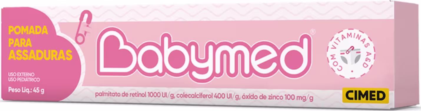 Não sei o CEPKit com pomadas preventivas para assaduras. Cimed Babymed Rosa com ativos como palmitato de retinol, colecalciferol e óxido de zinco, protegendo a pele delicada do bebê.