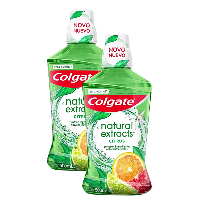 Kit com enxaguante bucal sem álcool. Colgate Natural Extracts Citrus é ideal para a higiene diária de dentes fortes e saudáveis.