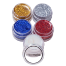 Kit com 5 glitters para maquiagem artística. Kit Colormake Glitter Cremoso 5 Unid é ideal para destacar o visual com muito brilho e cor. Prático, pode ser usado tanto no corpo quanto no rosto.