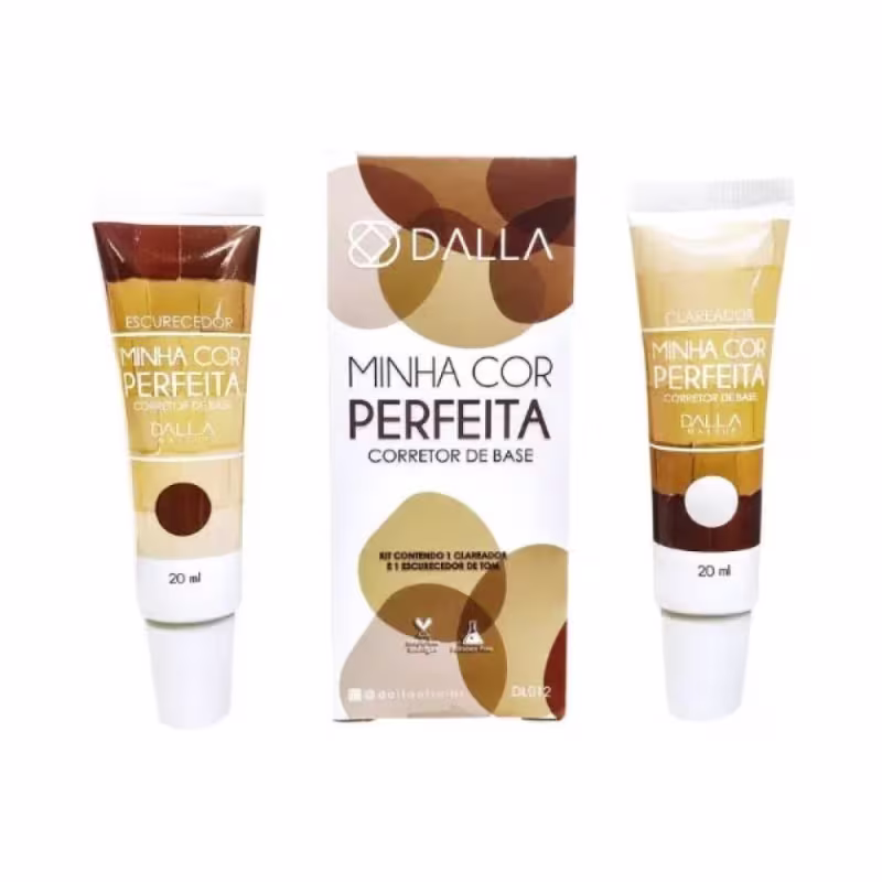 Kit com dois corretores de base para todos os tipos de pele. Dalla Makeup Minha Cor Perfeita Duo Corretor de Base te ajuda com um escurecedor e um clareador.