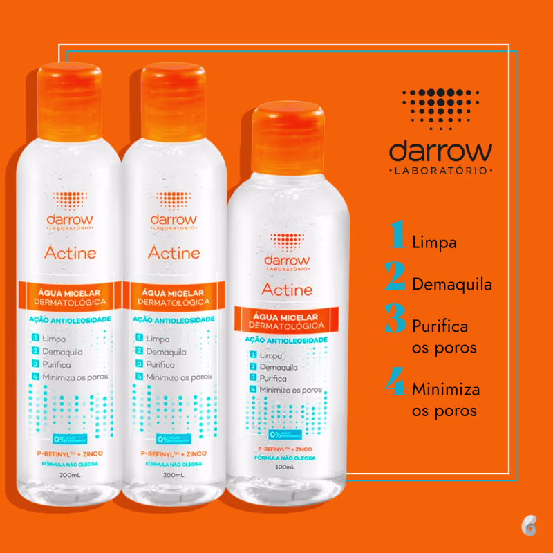Kit facial com águas micelares para peles oleosas. Darrow Actine Dermatológica Super purifica e demaquila profundamente o rosto enquanto controla a oleosidade.