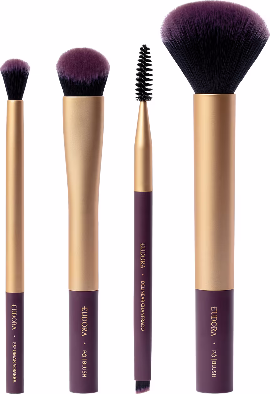 Kit de Pincéis Eudora Essentials: pó/blush, sombra, sobrancelha e multifuncional. Melhores Kits de Maquiagem da Eudora na BLZ. Ver mais ❯